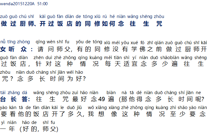 做过厨师, 开过饭店的同修如何念往生咒