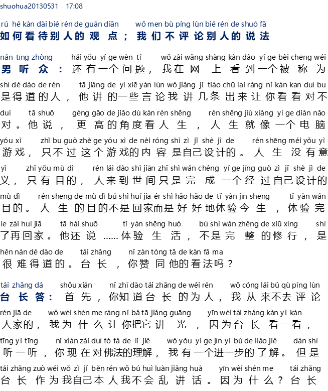 shuohua20130531  17:08  – Bagaimana cara menyikapi pandangan orang lain, kita tidak mengomentari pendapat orang lain