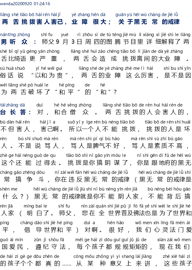 Berlidah dua, mengadu domba hingga mencelakai orang lain, akan mendapatkan karma buruk yang sangat besar 两舌挑拨害人害己, 业障很大, 关于黑无常的戒律