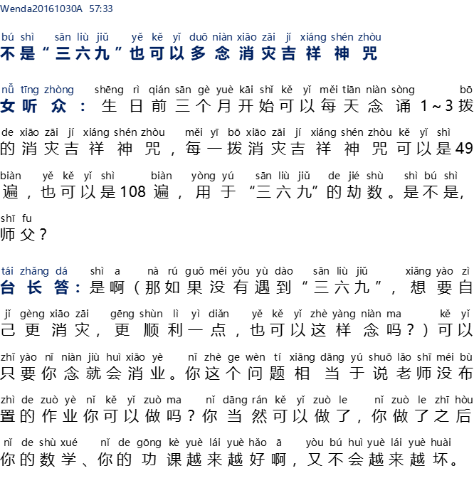 Wenda20161030A 57:33 — Bukan halangan umur “3; 6; 9” juga boleh perbanyak melafal paritta Xiao Zai Ji Xiang Shen Zhou