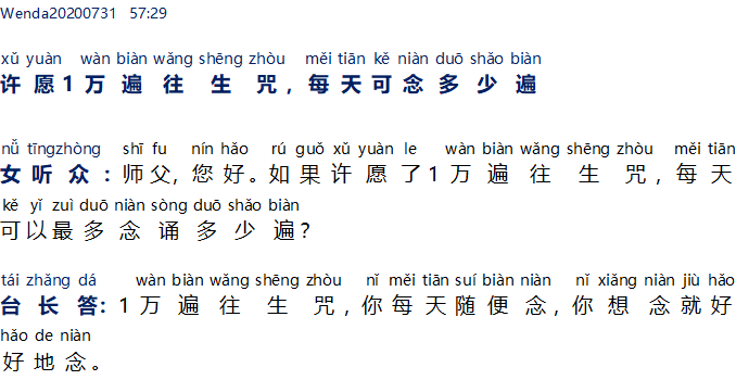Pendengar wanita: Halo, Master. Jika Anda berikrar 10.000 mantra Wang Sheng Zhou, sehari paling banyak boleh baca berapa kali?