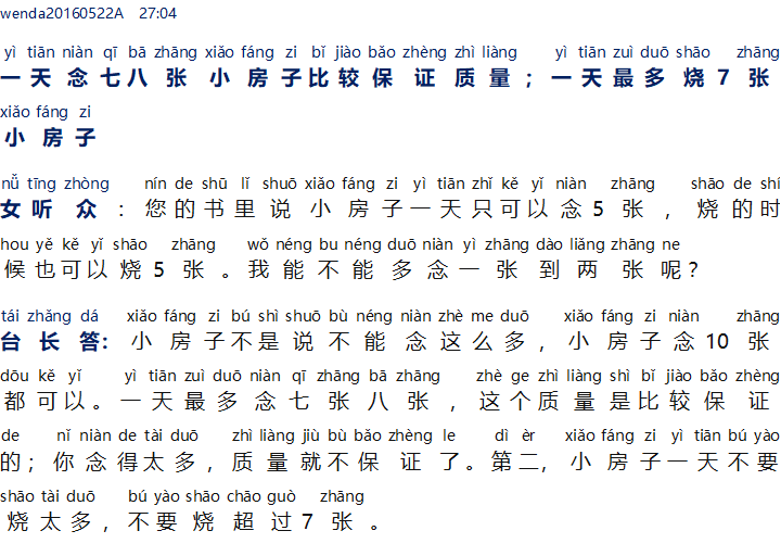Kualitas XFZ akan lebih terjamin dengan jumlah pelafalan per hari 7-8 lembar, maksimal hanya bakar 7 lembar dalam 1 hari 一天念七八张小房子比较保证质量;一天最多烧7张小房子