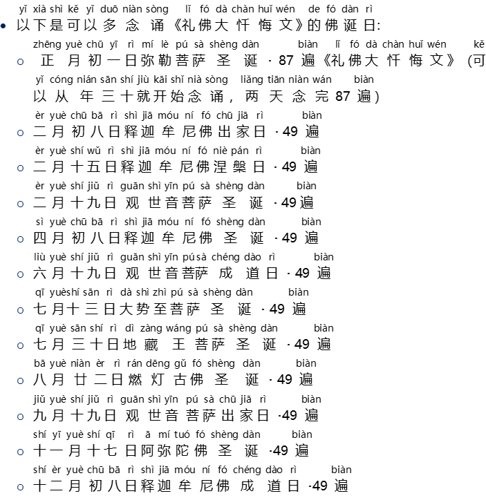 Melafalkan [Li Fo Da Chan Hui Wen] di Hari Raya Khusus dan Hari Kelahiran Para Buddha 有关特殊节日及佛诞念诵《礼大忏悔文》的问题