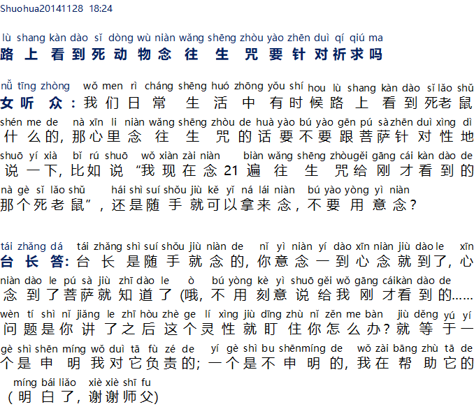 Shuohua20141128 18:24 – Melihat hewan mati di jalan, apakah harus ada permohonan khusus saat melafalkan mantra Wang Sheng Zhou