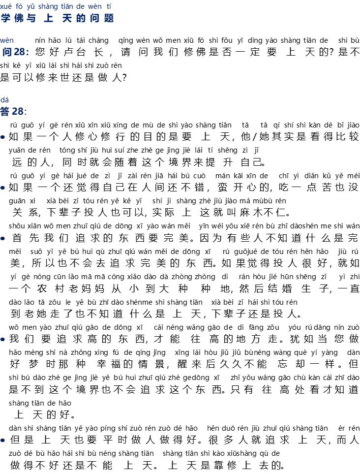 Tanya [28]: Master Lu, apakah tujuan kami menekuni Ajaran Buddha Dharma harus naik ke Alam Surga? Dapatkah kami membina diri dan kembali sebagai manusia di kehidupan berikutnya?