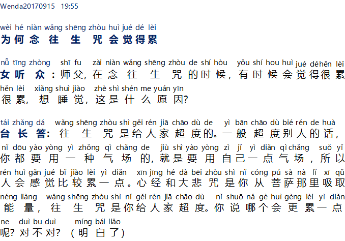 Wenda20170915   19:55 – Mengapa merasa lelah setelah melafalkan mantra Wang Sheng Zhou
