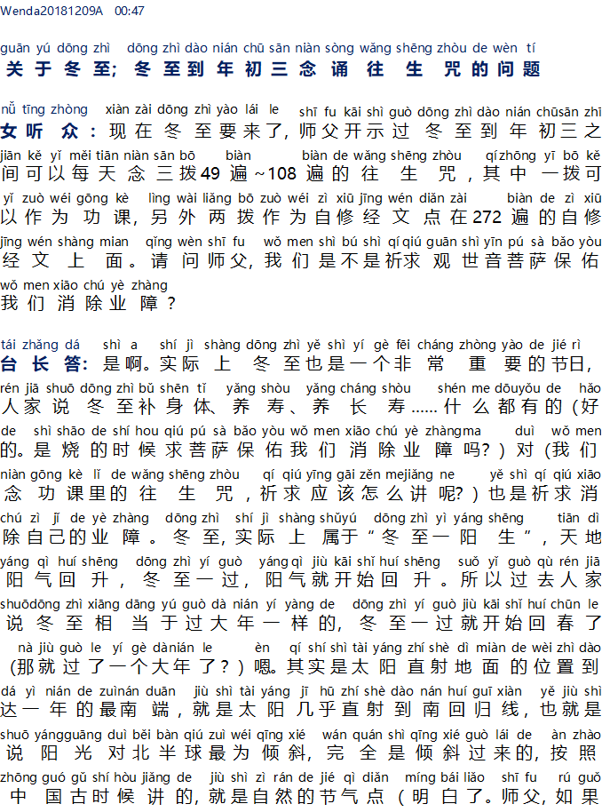 Mengenai Hari Raya Onde, Pertanyaan tentang melafalkan mantra Wang Sheng Zhou dari Hari Raya Onde sampai hari ketiga tahun baru imlek 关于冬至, 冬至到年初三念诵往生咒的问题