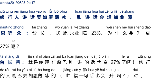 Orang yang membina diri harus hati-hati dalam berbicara, berbicara sembarangan bisa menambah karma buruk 修行人讲话要如履薄冰, 乱讲话会增加业障