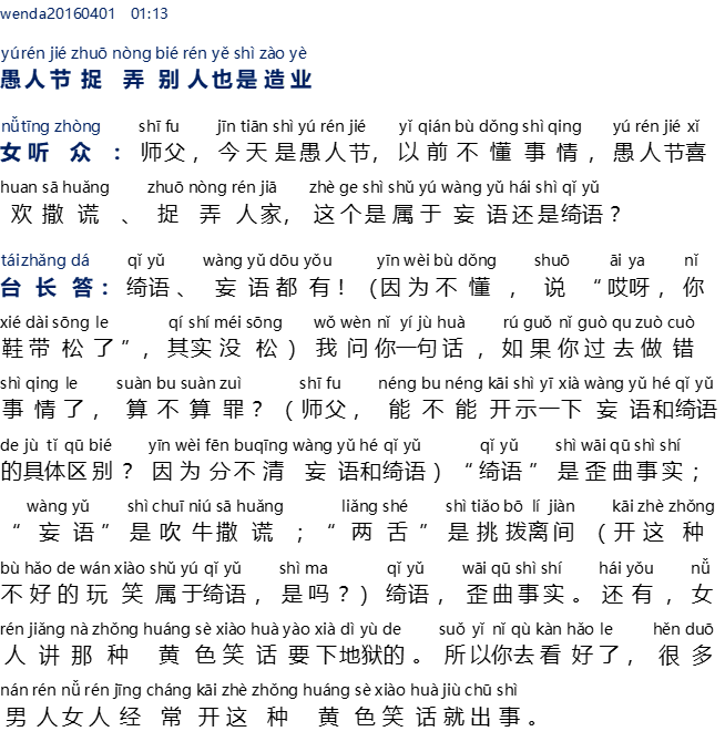 Pendengar Wanita: Master, hari ini April Mop, dulu tidak mengerti, di hari April Mop suka berbohong, mengerjaki orang lain, apakah ini termasuk berbohong atau rayuan gombal?