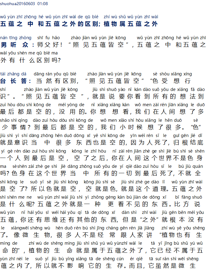 Perbedaan antara didalam lima bentuk kemelekatan dan diluar lima bentuk kemelekatan; tumbuh-tumbuhan termasuk diluar lima bentuk kemelekatan 五蕴之中和五蕴之外的区别;植物属五蕴之外