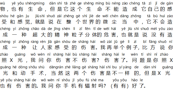 Master menjawab: Tentu saja ada perbedaan, “terbebaskan dari 5 bentuk kemelekatan”, terdiri dari kemelekatan terhadap “ bentuk/rupa, perasaan, pemahaman, bentuk-bentuk pikiran, dan kesadaran”. “Terbebaskan dari 5 bentuk kemelekatan ” artinya anda harus berpikiran bahwa segala hal pada akhirnya adalah kosong dan tidak berguna. Coba anda pikirkan, berapa banyak hal yang telah kita pikirkan didunia ini? Pada akhirnya semuanya adalah kosong, banyak hal yang kita pikirkan sewaktu masa kecil. ” Bentuk/rupa” adalah banyak hal yang ada dalam kesadaran kita juga termasuk kosong, dikarenakan jika manusia meninggal, bagaimanapun, seseorang pada akhirnya akan menjadi kosong, setelah kosong, bukankah anda hidup didunia ini memiliki raga? Raga di dunia ini terhadap semua hal pada akhirnya akan meninggal juga, bukankah ini semuanya adalah kosong? Maka itu disebut rupa adalah kosong, dan kosong terhadap rupa, inilah konsepnya. Apa yang dimaksud dengan di luar 5 bentuk kemelekatan? Diluar 5 bentuk kemelekatan adalah sesuatu yang lebih tidak dapat dilihat. Misalnya 5 bentuk kemelekatan, anda mempunyai pemikiran dan hal-hal yang lain, akan tetapi “diluar” artinya tidak ada sama sekali. Seperti mikroba, bukankah kebanyakan orang sering memberitahu kepada orang lain bahwa “tumbuhan juga memiliki kehidupan”, nyawa tumbuhan termasuk diluar 5 bentuk kemelekatan, dia tidak termasuk ke dalam 5 bentuk kemelekatan, sehingga tidak mempengaruhi kelangsungan hidupnya. Kemudian, meskipun merupakan mikroorganisme, ia juga memiliki nyawa, akan tetapi hidupnya tidak bisa merasakan dan tidak dapat menimbulkan perasaan, artinya berada didalam debu di seluruh dunia, dia tidak akan menyebabkan bahaya terhadap partikel psikis terbelah yang super-besar, dengan kata lain, tidak akan menyebabkan pengaruh buruk terhadap sebuah perasaan seseorang. Saya memberi sebuah contoh lagi, Misalnya, jika Anda melakukan rontgen, Saya bertanya apakah ada pengaruh buruk terhadap anda atau tidak? Pasti ada pengaruh buruk. Masalahnya adalah Anda melakukan rontgen dan menjalani operasi, tentu saja pengaruh buruk kedua ini tidaklah sama, tapi sinar-X juga akan berbahaya, saya bertanya kepada Anda apakah ponsel memiliki radiasi? (ada…. ada) baiklah.
