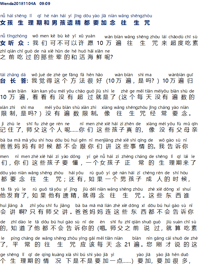 Periode menstruasi anak perempuan dan spermatorrhea anak laki-laki harus perbanyak melafalkan Mantra Wang Shen Zhou 女孩生理期和男孩遗精都要加念往生咒
