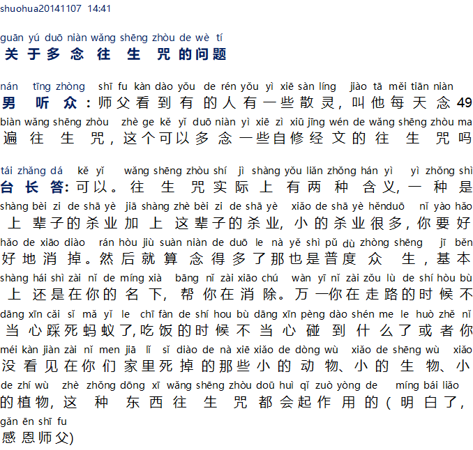 Pertanyaan tentang banyak melafalkan mantra Wang Sheng Zhou 关于多念往生咒的问题