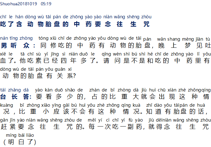 Setelah makan obat tradisional Cina yang mengandung plasenta hewan harus melafalkan mantra Wang Sheng Zhou 吃了含动物胎盘的中药要念往生咒